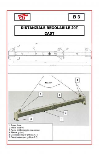 Il distanziale in oggetto è regolabile in lunghezza. Le testate sono predisposte con golfari per grilli di sollevamento.